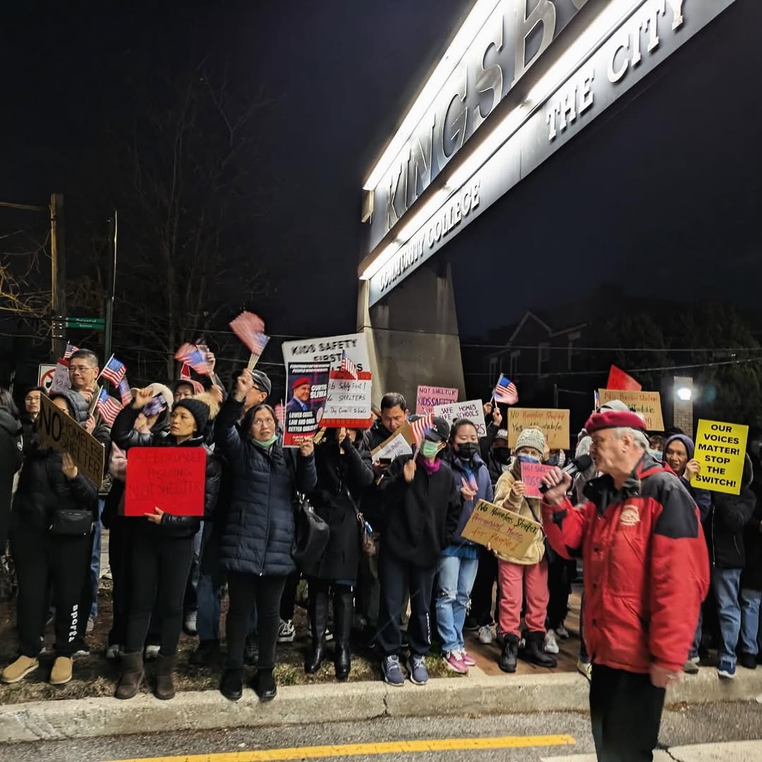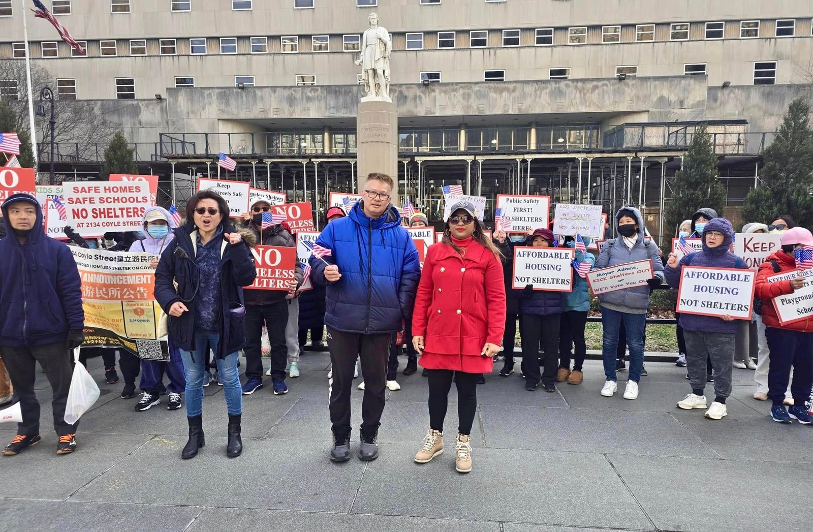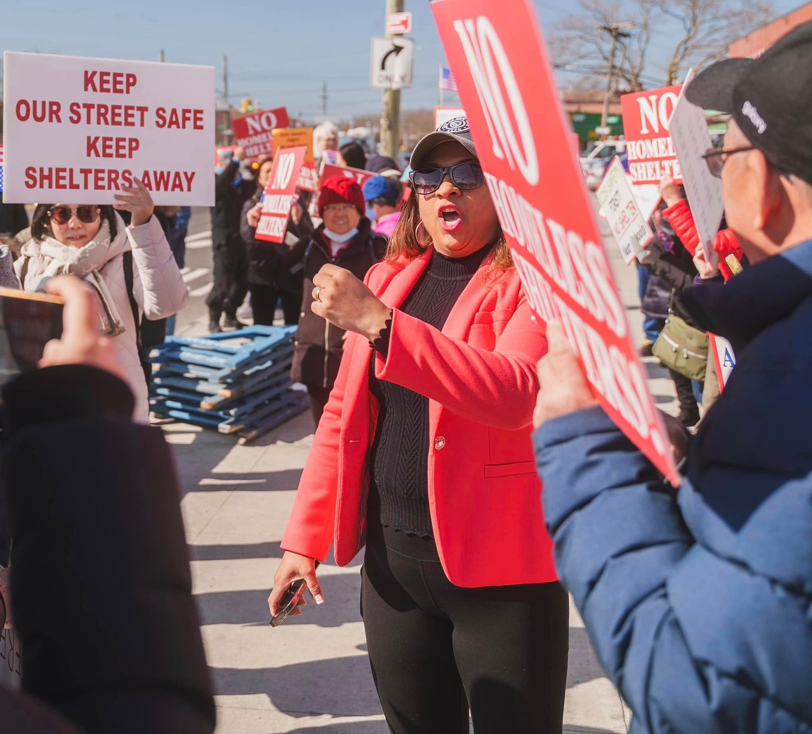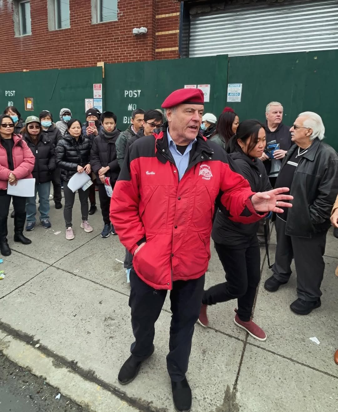 Many residents had to stand outside due to space constraints. Curtis Sliwa spoke to the crowd outside and they cheered for him.