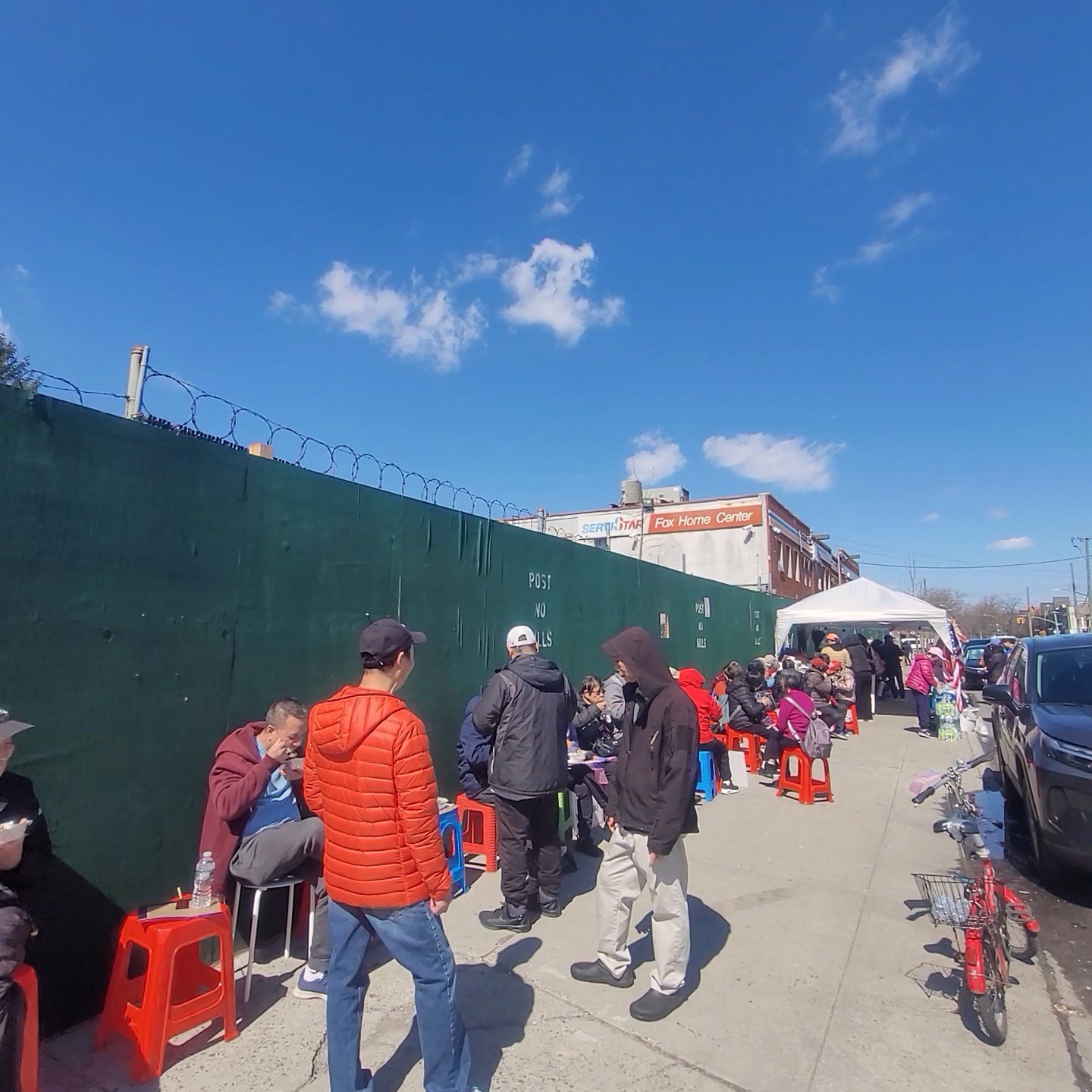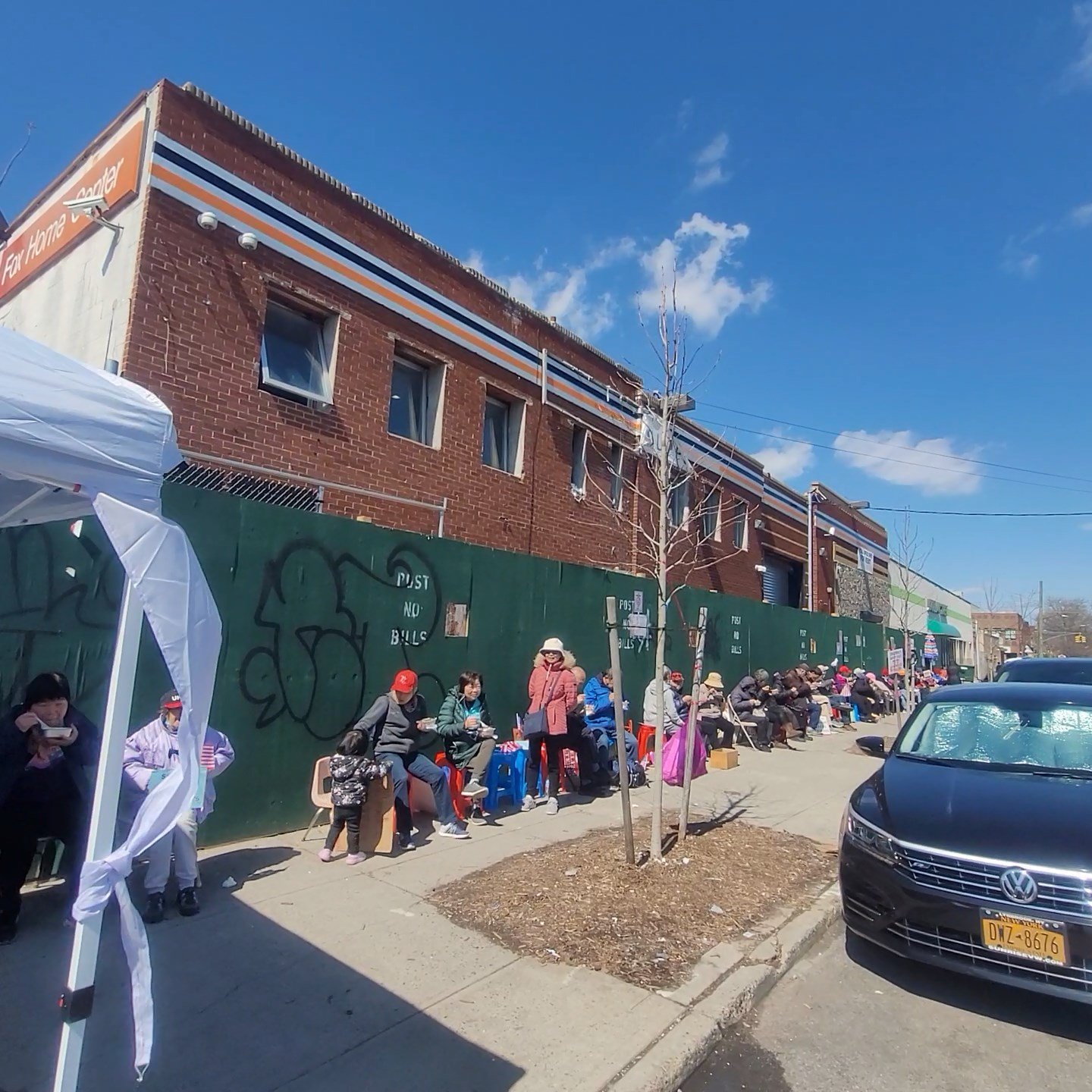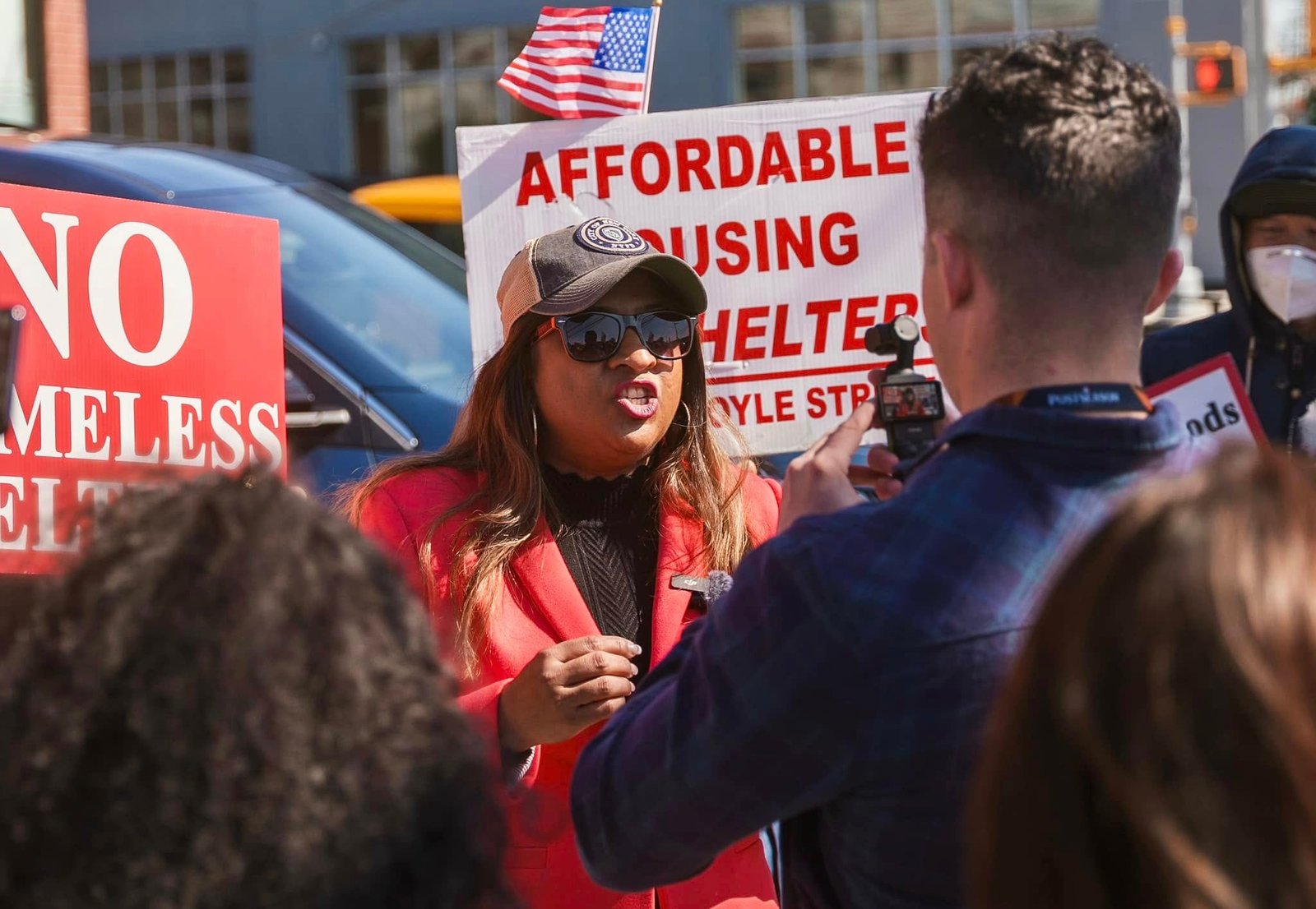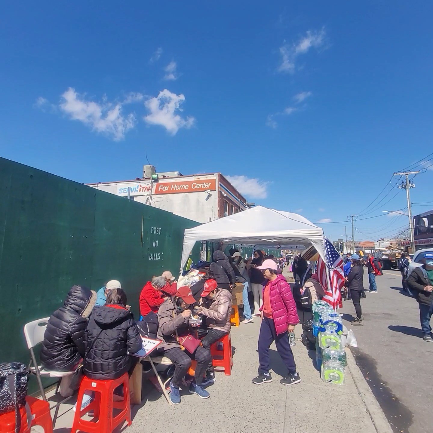 Many residents had to stand outside due to space constraints. Curtis Sliwa spoke to the crowd outside and they cheered for him.