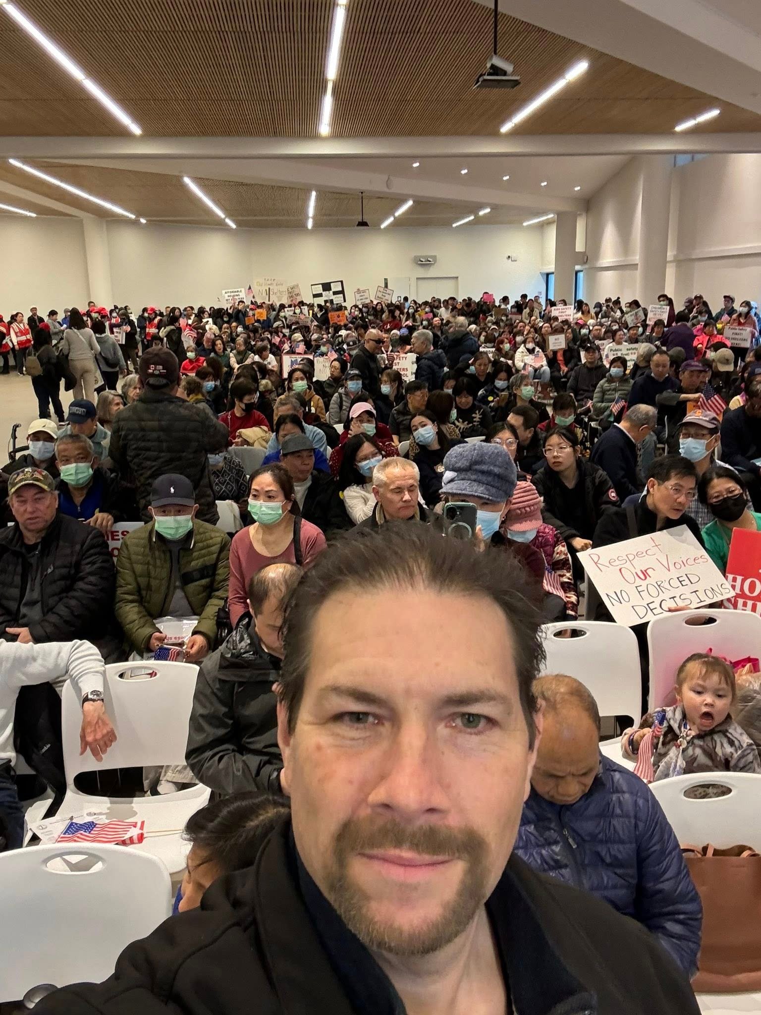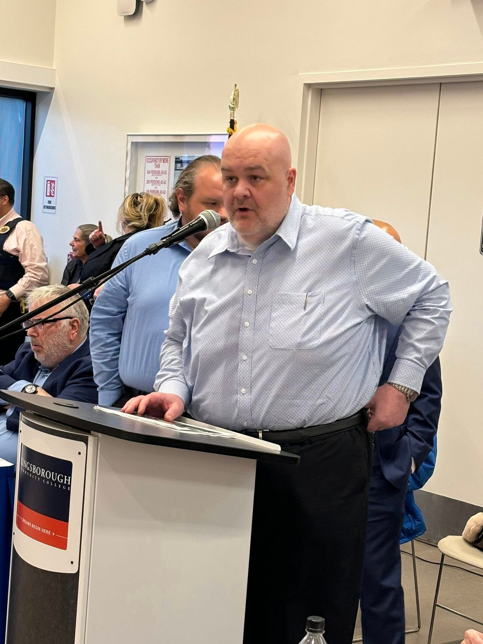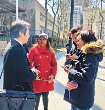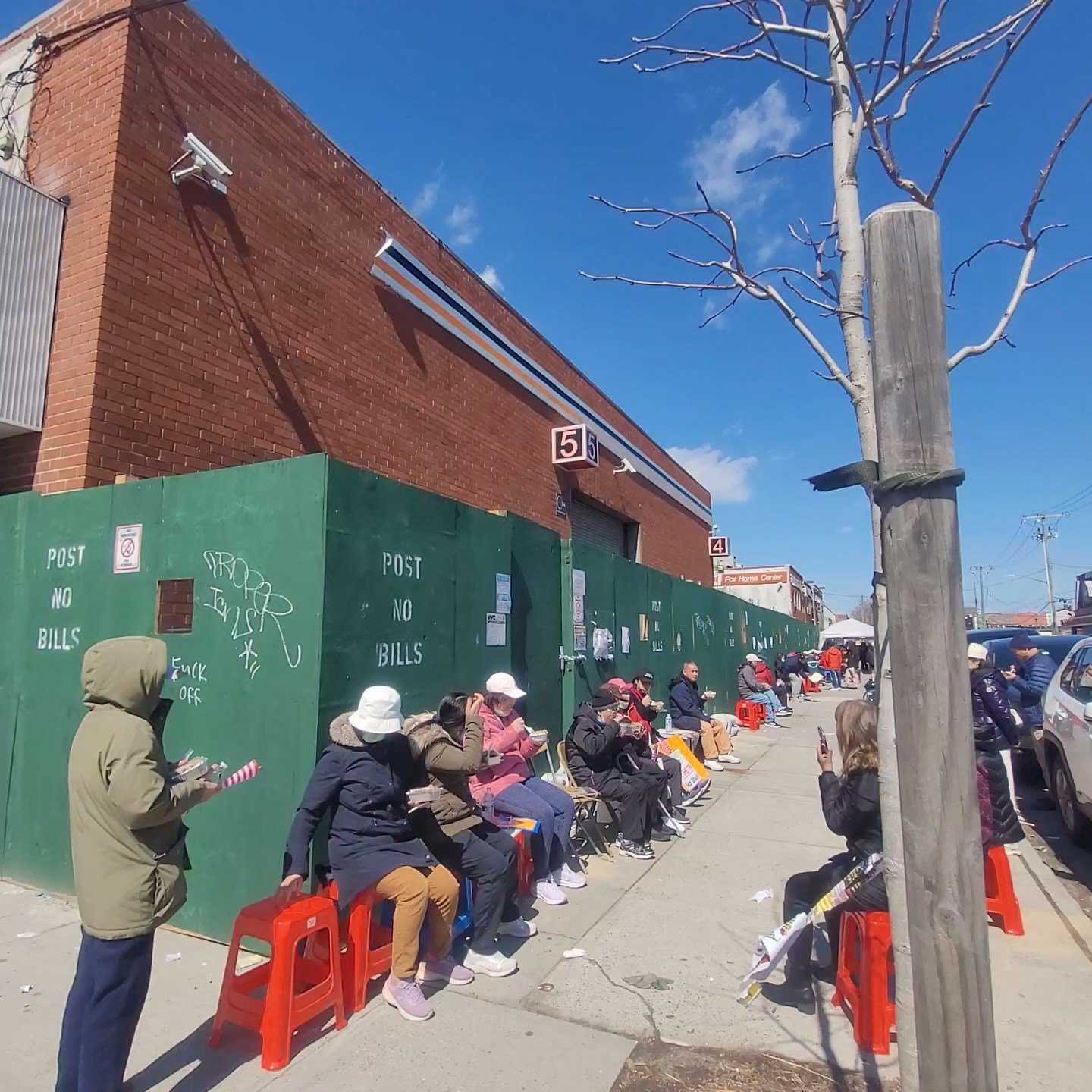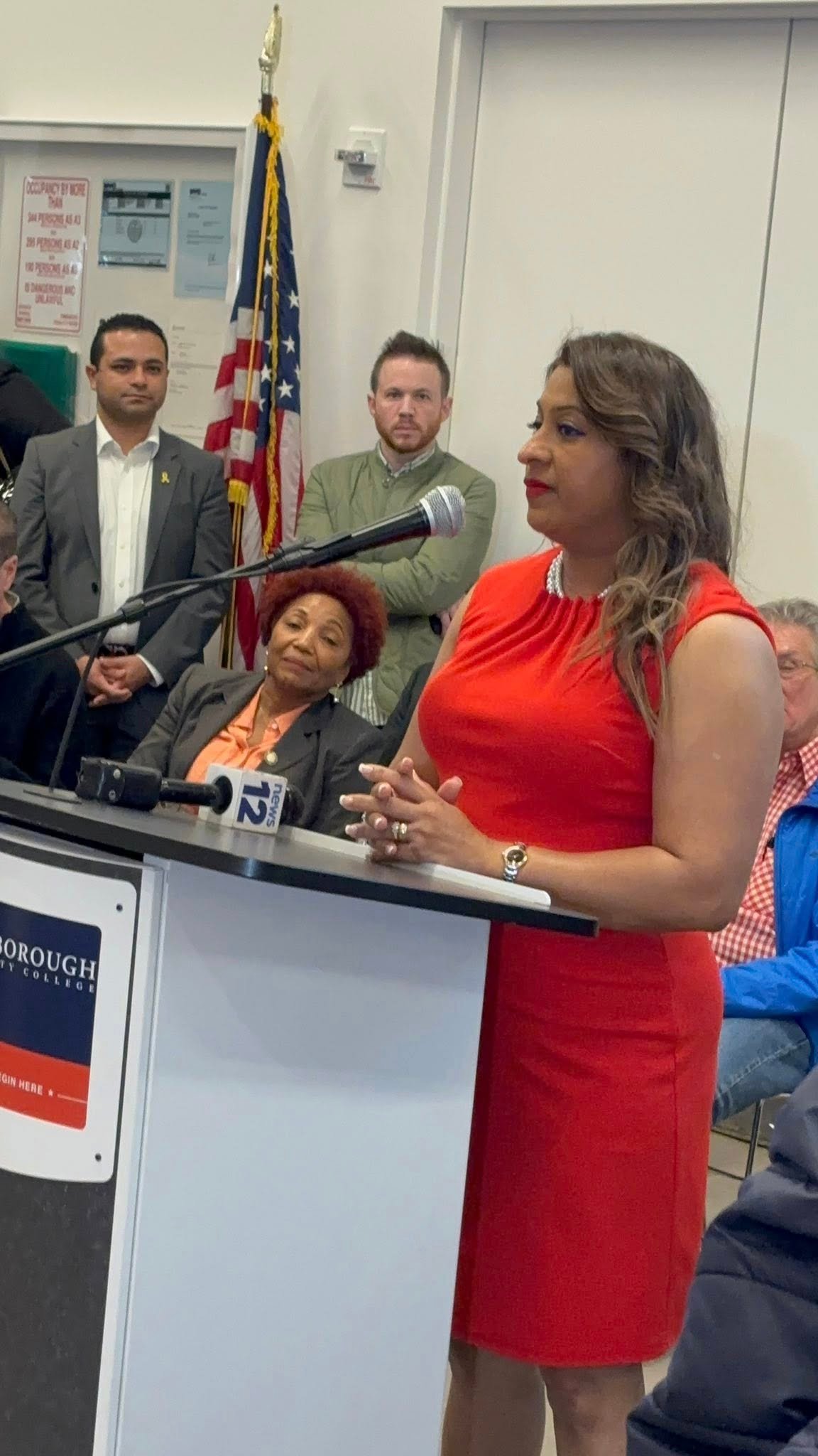 Many residents had to stand outside due to space constraints. Curtis Sliwa spoke to the crowd outside and they cheered for him.